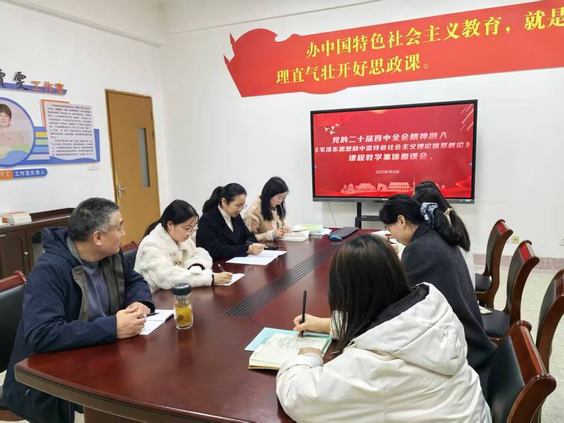 11月12日下午,教研室对如何将党的二十届四中全会精神融入课程教学进行了集中研讨。大家一致认为:要立足本课程属性,以大历史观的方法讲清马克思主义中国化时代化的历史过程和主要理论成果。要联系实际将全会精神融入到本课程中,活用教材、精心设计,增强教育教学针对性和说服力。会议具体围绕以下章节内容开展“融入”教学研讨,如:课程“导论”的“马克思主义中国化时代化”的科学内涵、第四章“社会主义建设道路初步探索的理论成果”中的“论十大关系”、“中国工业化道路”、第六章“邓小平理论”的“经济发展战略”、第八章“科学发展观”中的“中国特色社会主义经济建设、政治建设、文化建设、社会建设和生态文明建设”。